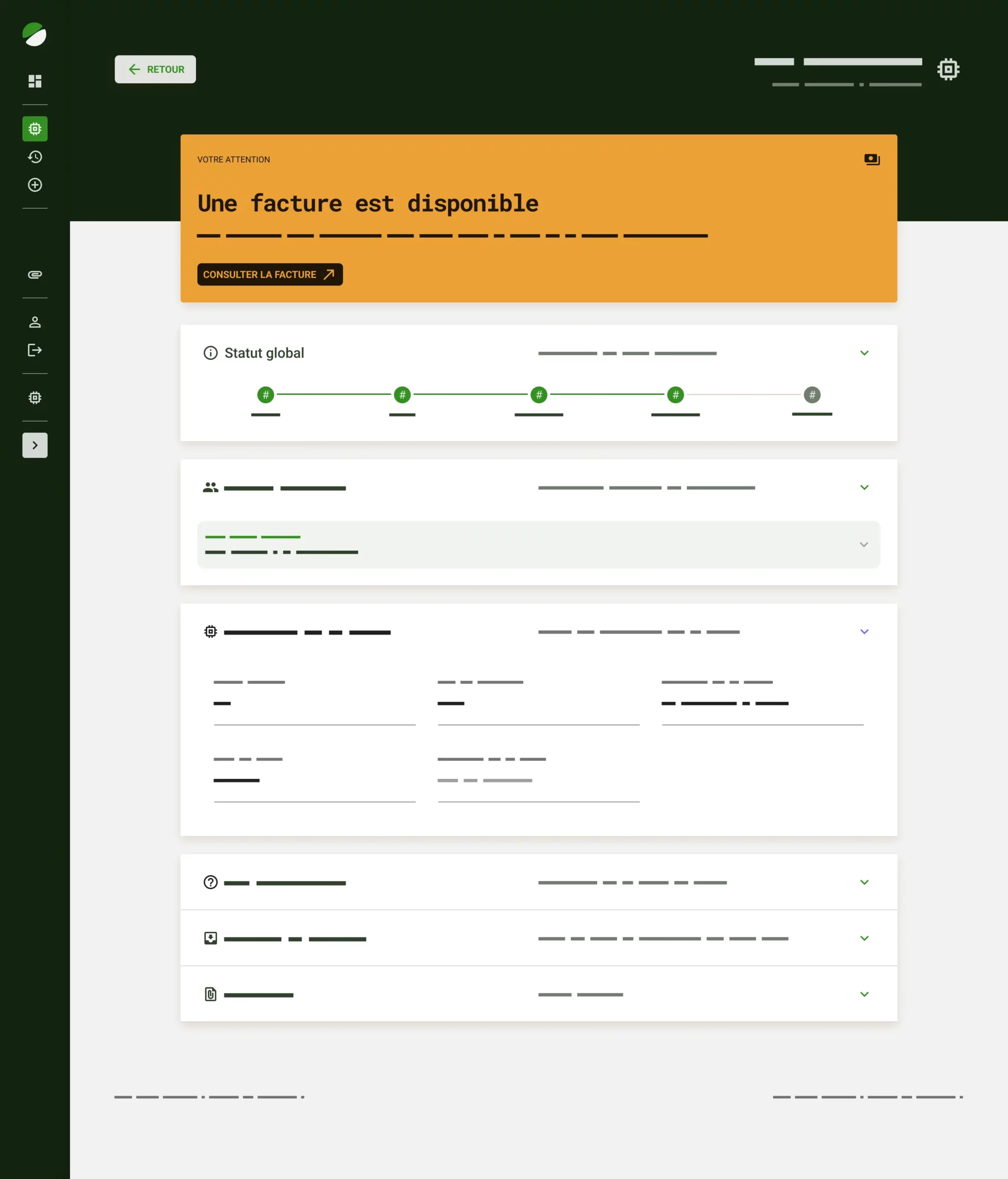 Certains textes sont cachés afin d’assurer la confidentialité du projet.
