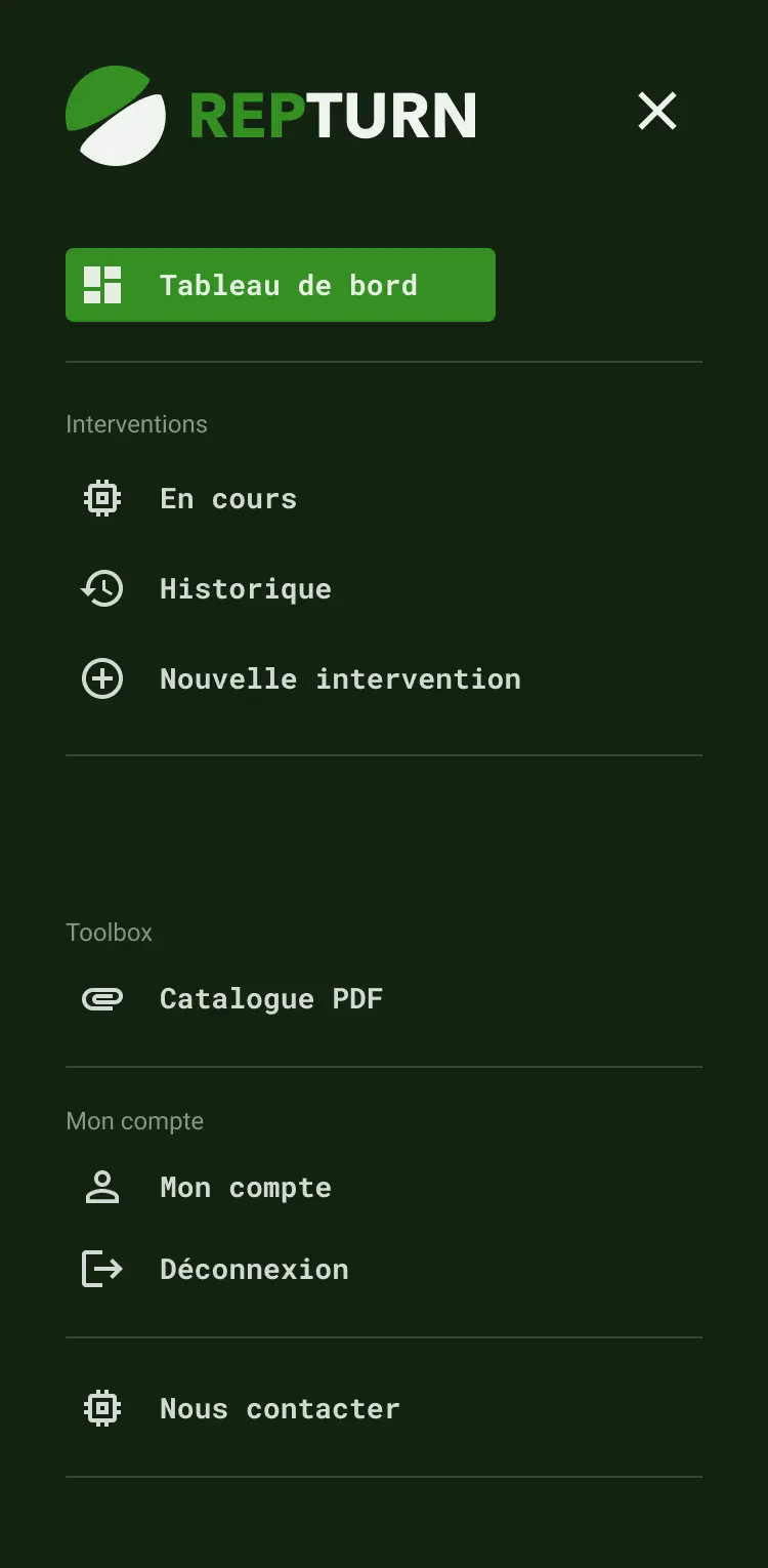 L’application pour les clients de la société Repturn permet de demander des commandes de réparation et de suivre leur évolution jusqu’à la livraison de la pièce réparée.